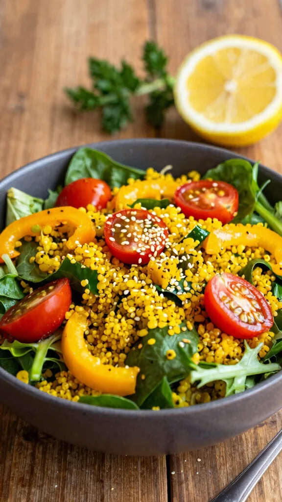 Craving something bright and nutritious? This Turmeric Quinoa Salad is bursting with vibrant flavors and health benefits. Rich in anti-inflammatory properties, turmeric combined with leafy greens creates a beautiful dish that not only looks good but also nourishes your body. Perfect for meal prep, this salad gets even tastier the next day. Add cherry tomatoes, bell peppers, and a handful of spinach for a refreshing crunch. A squeeze of lemon ties everything together, making each bite a delight.