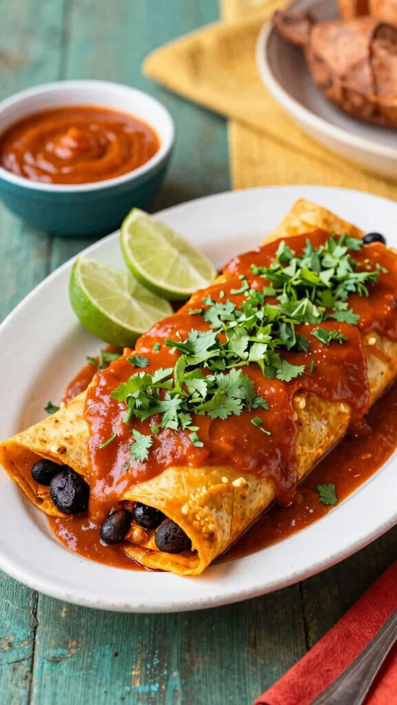 – These enchiladas can be made vegan by skipping the cheese and using a plant-based sauce.