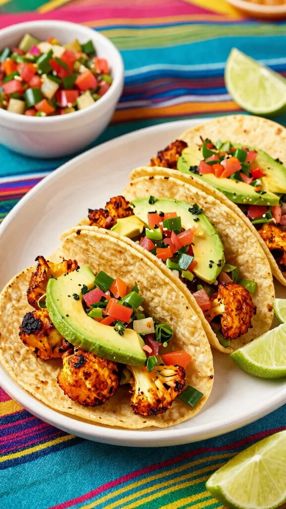 5. Fill each tortilla with roasted cauliflower and top with avocado and pico de gallo. Serve with lime wedges.