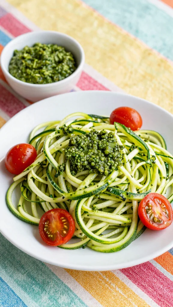 Craving a lighter take on pasta? These Zucchini Noodles with Pesto are a fun and healthy alternative. Zoodles are low in calories and rich in vitamins, making them a perfect choice for a nutritious meal. Homemade pesto made from fresh basil, garlic, and olive oil brings bold flavors that complement the zucchini beautifully. This dish can be whipped up in no time, ideal for a healthy weeknight dinner or a refreshing lunch. Top it with cherry tomatoes and nuts for added texture and taste!