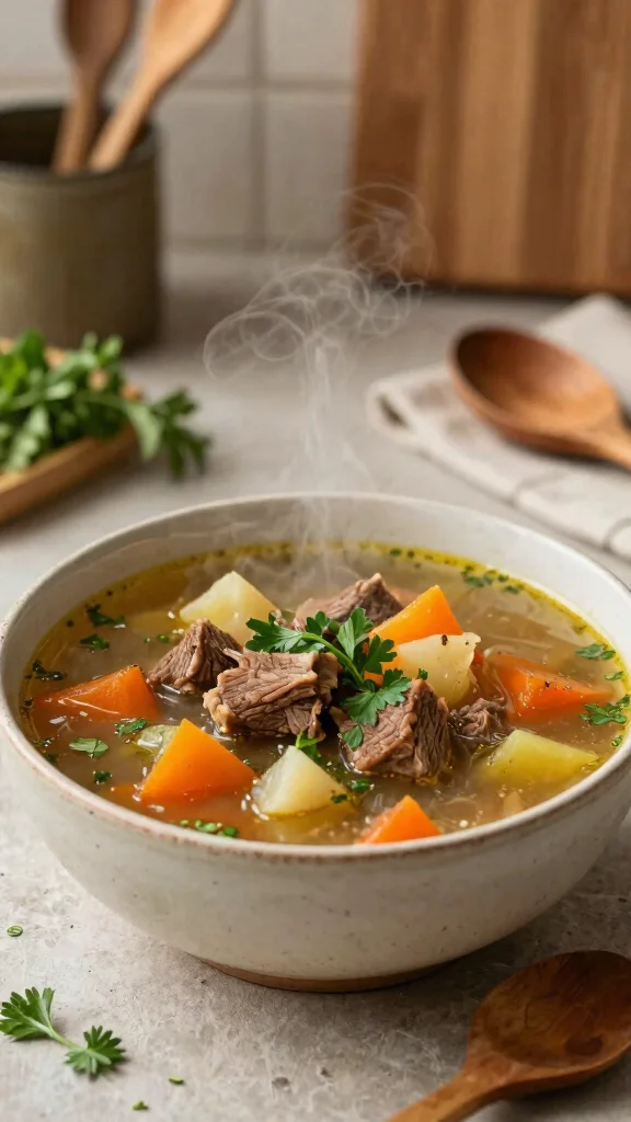Fun fact: A bowl of Beef and Vegetable Soup can deliver about 25–30g of protein per serving thanks to lean beef. Customize with your favorite veggies for a practical, low-carb beef healthy recipes that fuels chilly days.