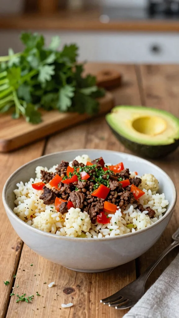 Looking for a low-carb meal that’s bursting with flavor? This Cauliflower Rice Beef Bowl swaps traditional rice for cauliflower, creating a delightful dish that’s both nutritious and easy to whip up. Using ground beef, you can prepare this flavorful bowl in no time, making it perfect for meal prep.