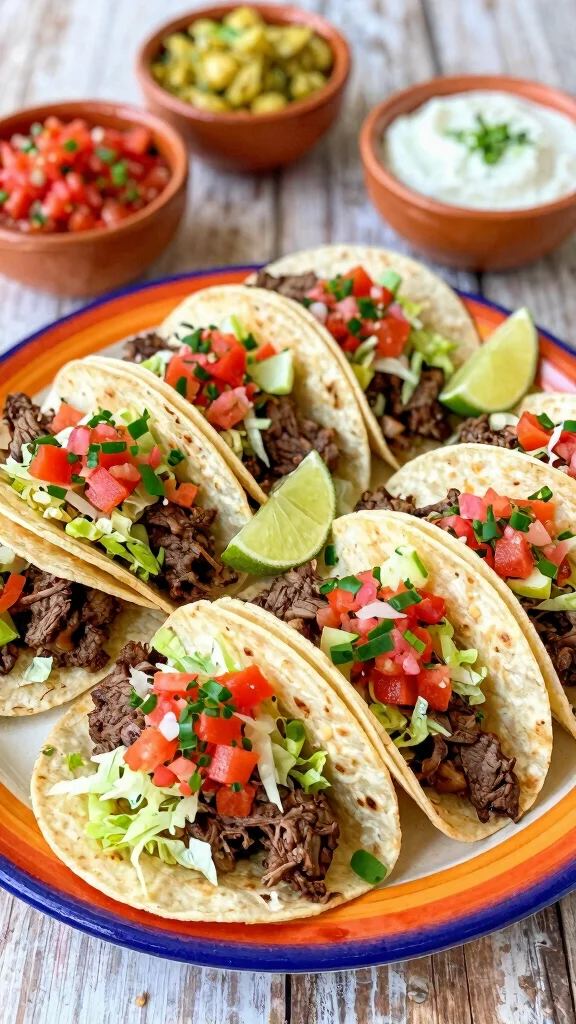4. Assemble each taco with beef and your choice of toppings.
