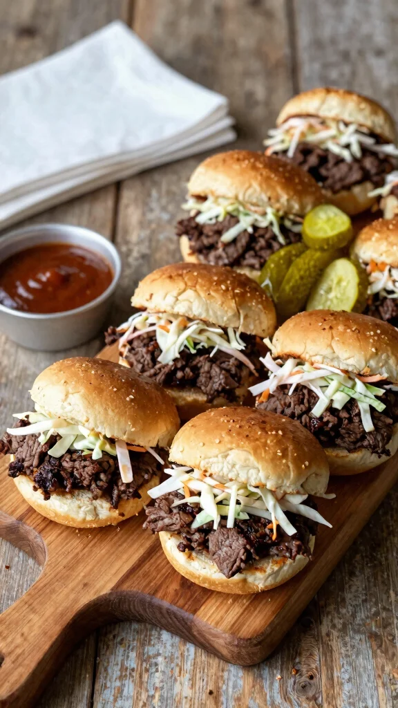 Ingredients: – 1 pound ground beef – 1 cup BBQ sauce – 12 slider buns – 1 cup coleslaw (optional) – Pickle slices for topping.
