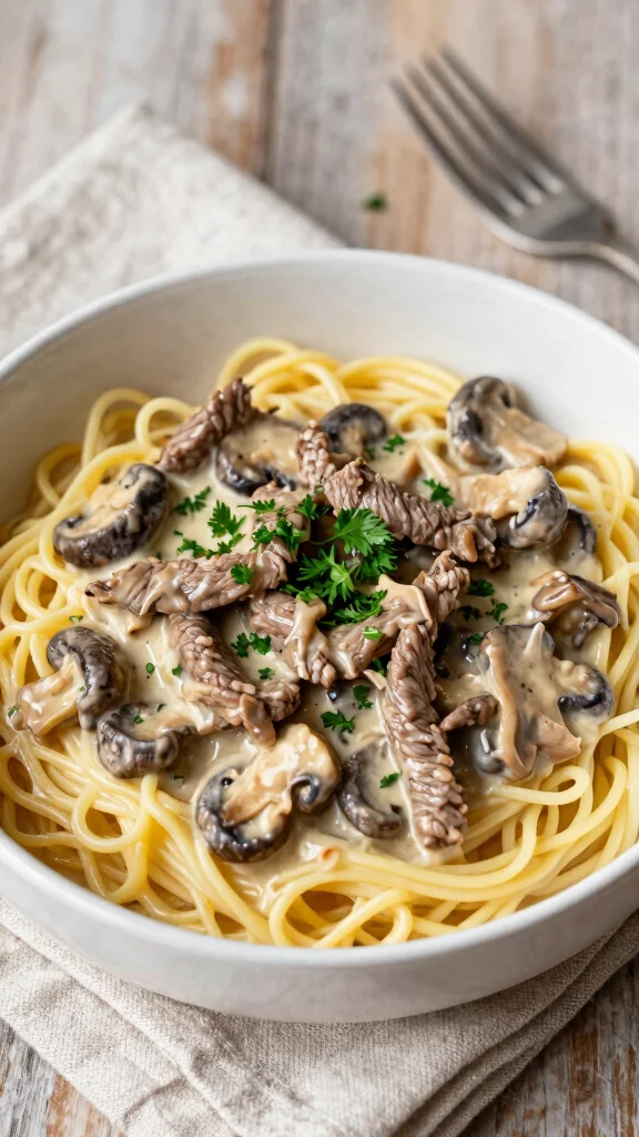 Sauté the beef and onions, then add mushrooms along with a splash of beef broth. After pressure cooking, stir in sour cream for that signature creaminess. Serve it over egg noodles for a dinner that feels special yet effortless.