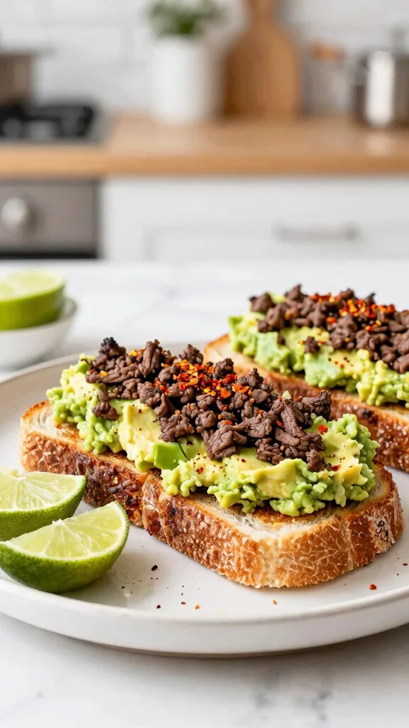 Elevate your lunch with beef and avocado toast. This tasty combination features creamy avocado spread over toasted bread, topped with savory beef for a quick and satisfying meal. It’s a delicious way to power through your day!