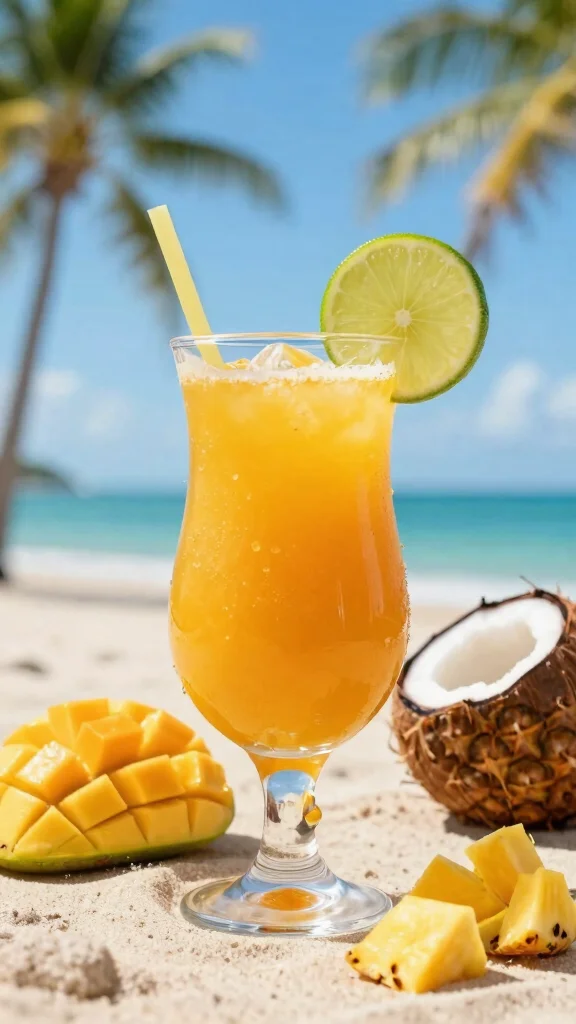 1. In a blender, combine mango, pineapple, coconut water, and lime juice.