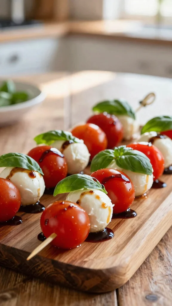 Fun fact: Mini Caprese skewers vanish in minutes at parties—often 3x faster than chips. Simple, colorful, and vegetarian appetizers for party success, they satisfy crowd cravings with fresh tomatoes, mozzarella, and basil in every bite.