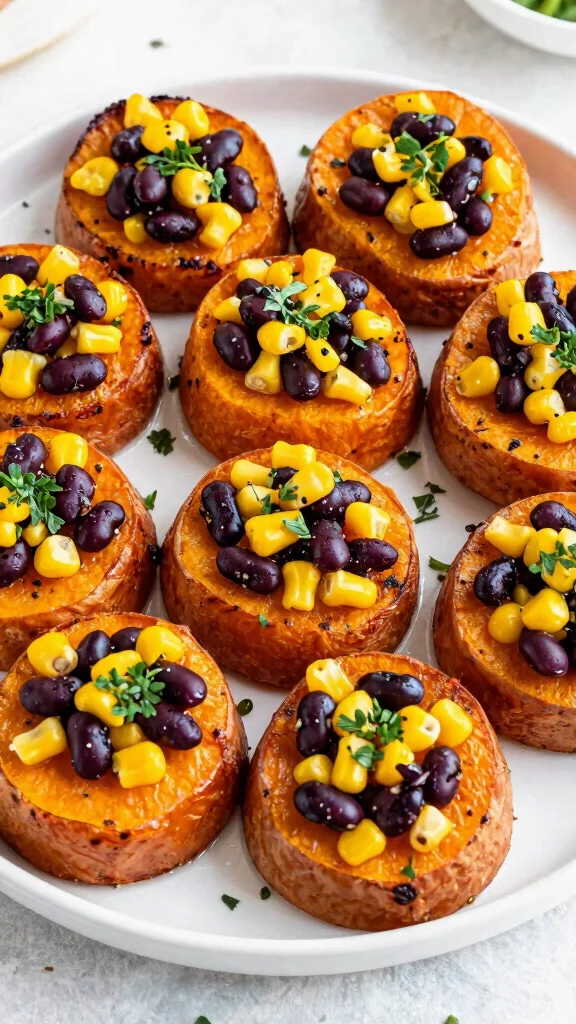 In search of a unique twist on appetizers? Sweet potato bites are a delightful option! These colorful rounds of roasted sweet potatoes topped with a savory mixture of black beans, corn, and spices offer a satisfying bite that’s both sweet and savory.
