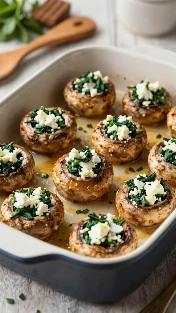 Looking for an appetizer that will wow your guests? Spinach and feta stuffed mushrooms are a fantastic choice! These earthy mushrooms are filled with a creamy blend of sautéed spinach and tangy feta, creating a savory bite that everyone will love.