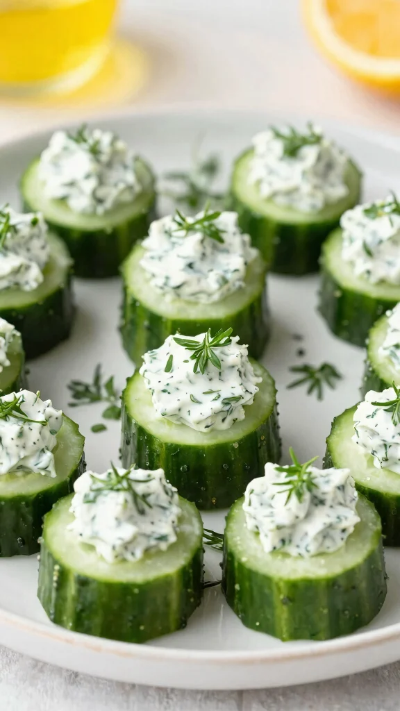 Want a refreshing and chic appetizer? Cucumber bites topped with cream cheese are just the ticket! These light snacks are not only visually appealing but also incredibly easy to prepare, making them perfect for any occasion.
