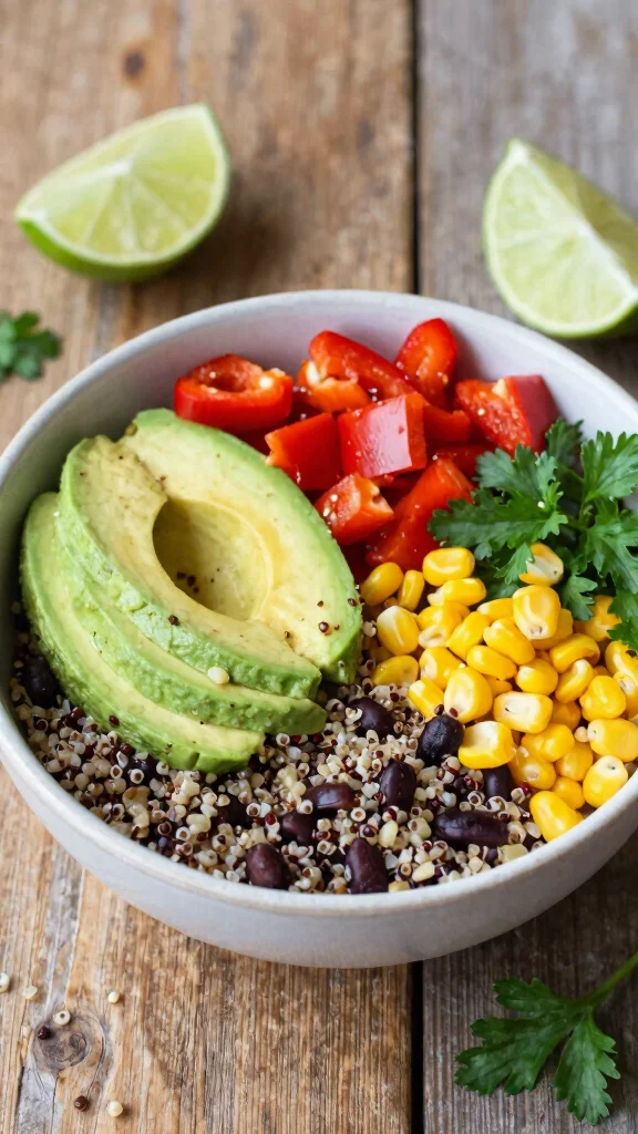 Mix quinoa with black beans and your choice of veggies for a nutritious, filling bowl that’s easy to customize.