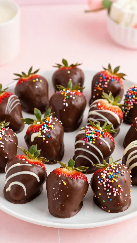 They’re easy to make and can be dressed up with white chocolate drizzle or sprinkles for added flair. Serving them chilled ensures that perfect chocolate shell, making them not just delicious but also visually stunning, sure to be a crowd favorite at any gathering!