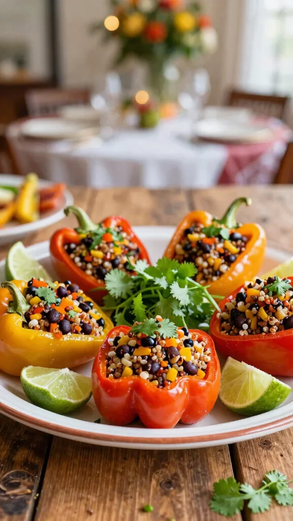 Looking for a colorful and nutritious party dish? Stuffed Mini Bell Peppers are just the ticket! These vibrant bites combine quinoa, black beans, and spices for a deliciously satisfying flavor that everyone will love.